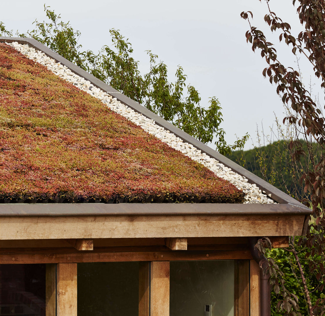 La cassette de toit vert est plantée de plants de sedum de 6 à 8 types de sedum différents. Cette plantation garantit une meilleure qualité de l’air grâce à la réduction du CO2 et au captage des particules. Le toit en sedum absorbe également l'eau et protège le toit de la lumière UB, ce qui lui permet de durer plus longtemps.